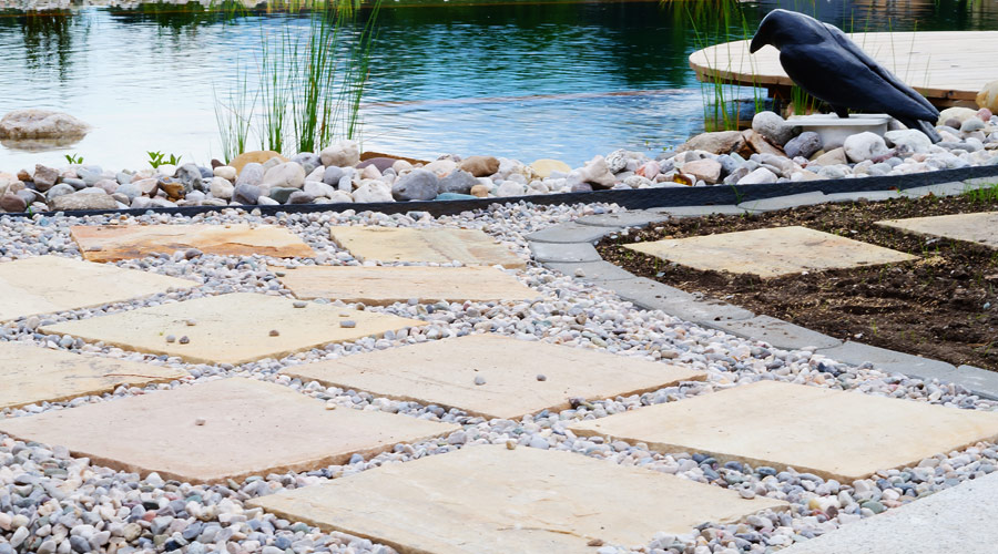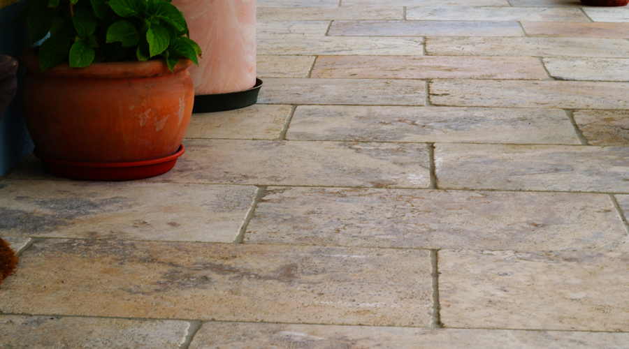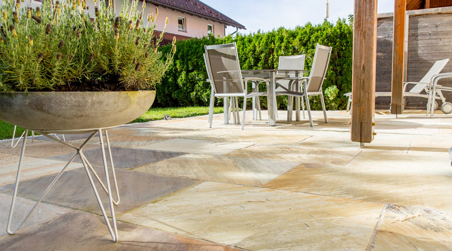 Verlegen von Betonwerksteinplatten auf Terrassen und Balkonen.